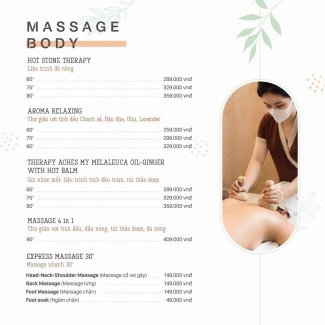 허브 마사지 : 이는 따뜻한 허브 주머니를 사용하여 전신 또는 원하는 부위에 이동시키는 마사지 기술로, 해당 부위에 대응하는 압력으로 시행됩니다.